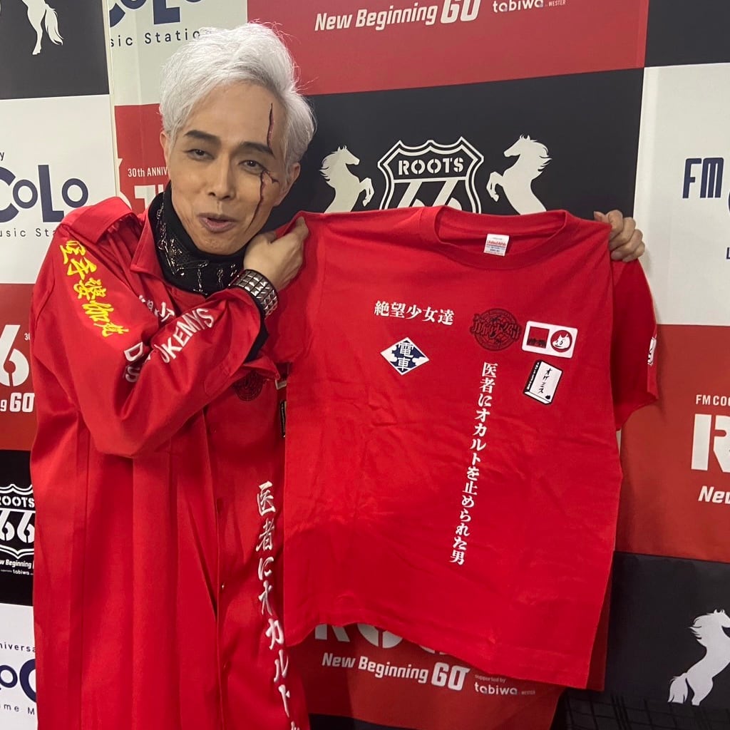 オーケン還暦記念のステージ用赤特攻服のデザインを再現した長袖Tシャツです。